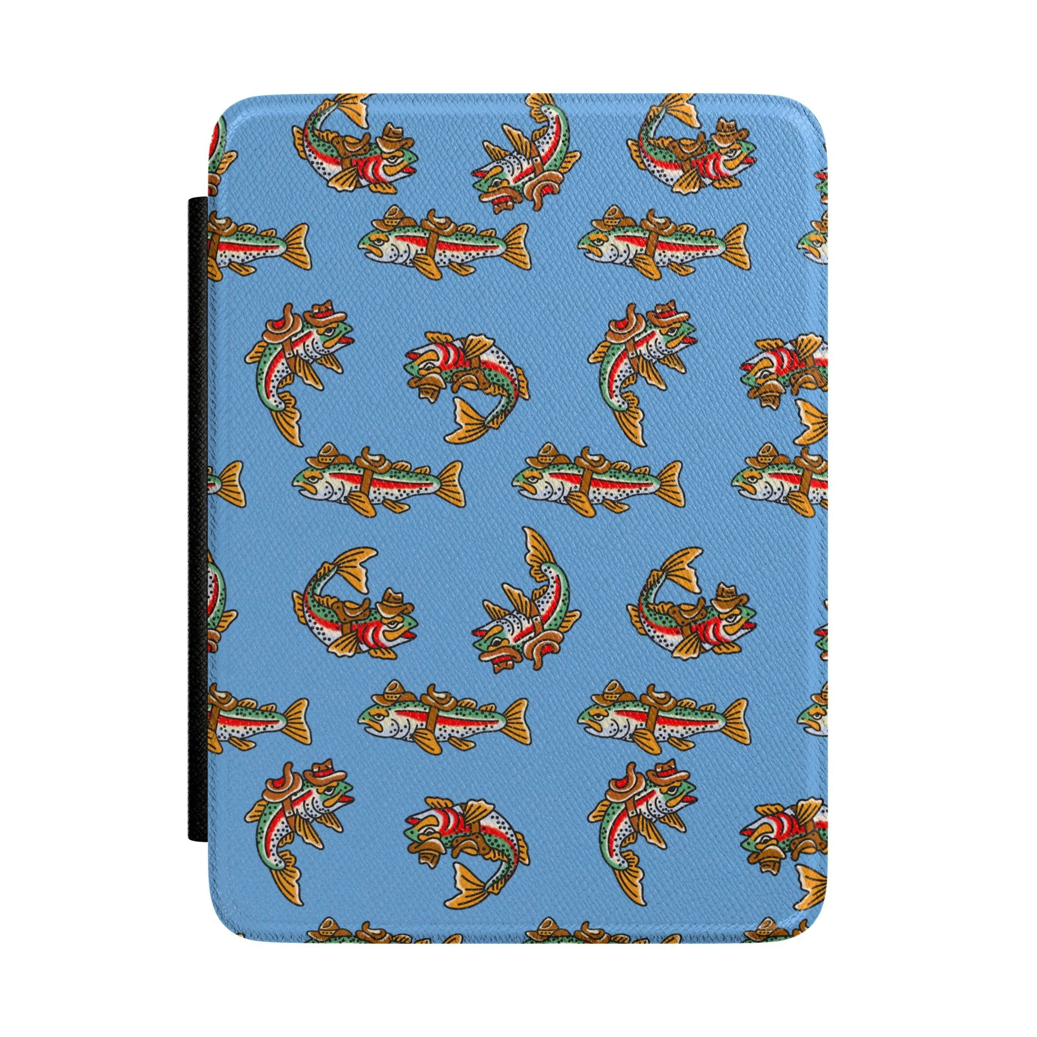 Colorful illustration of a fish with a human-like face, wearing a cowboy hat and a big grin.