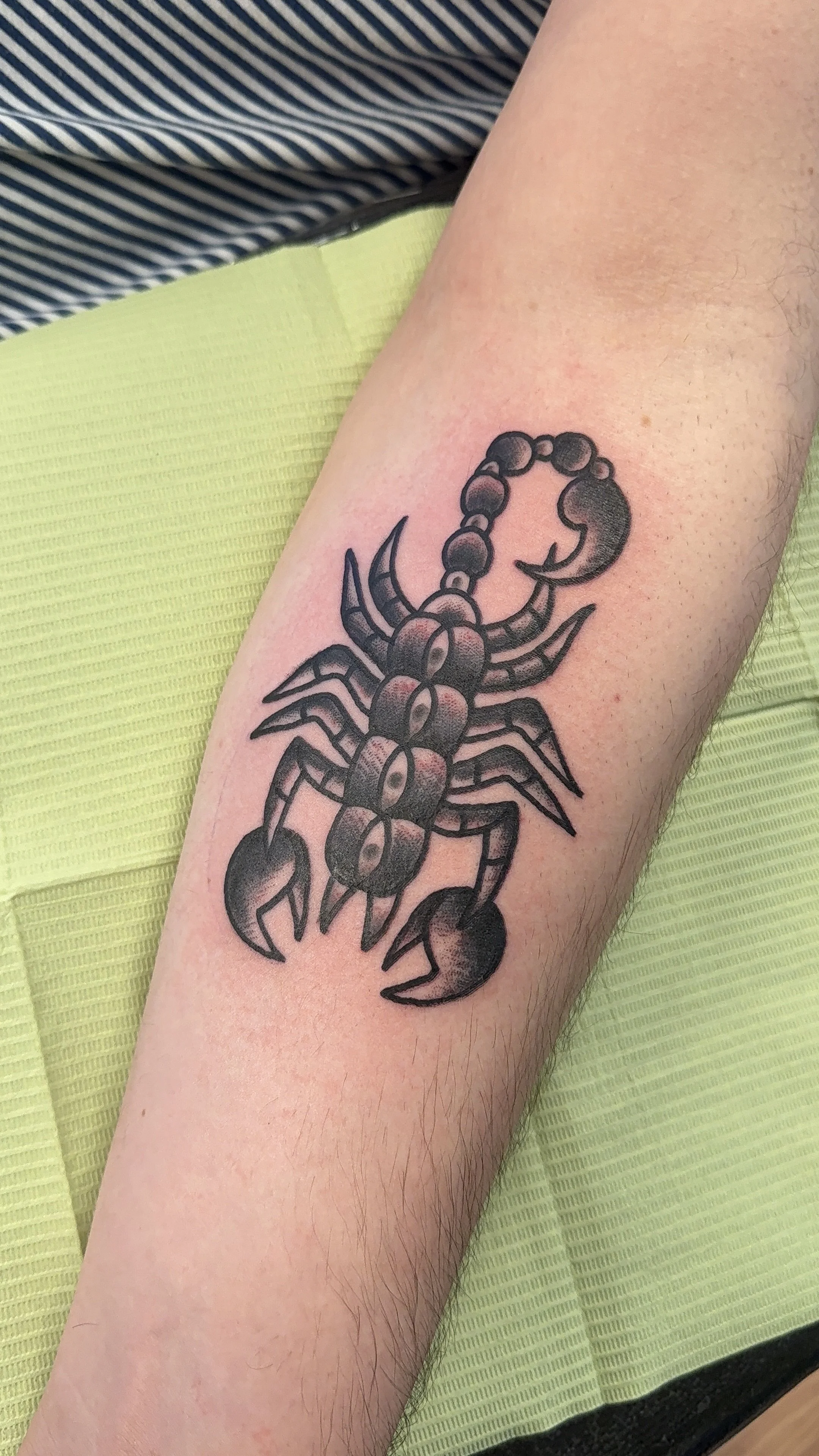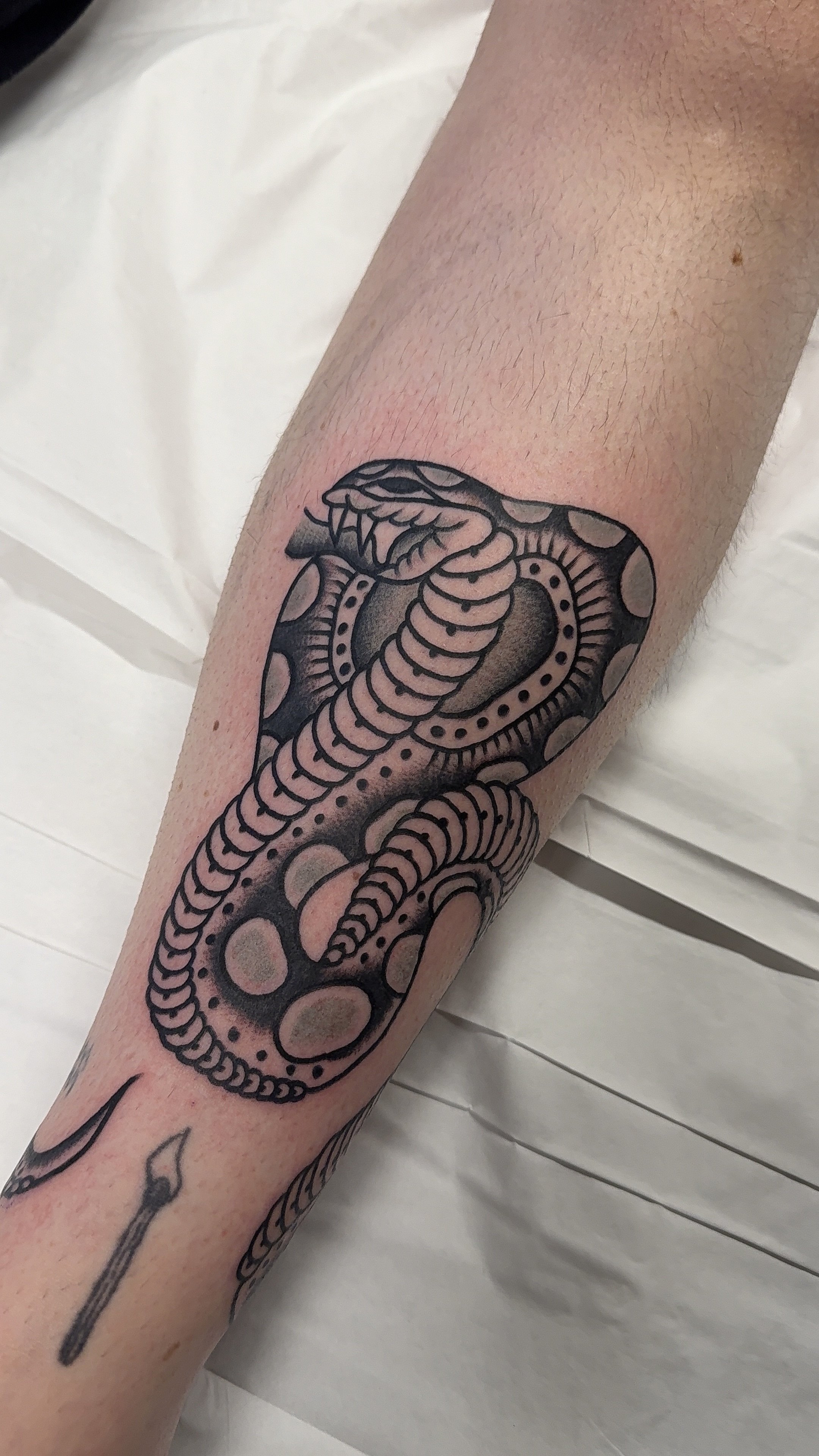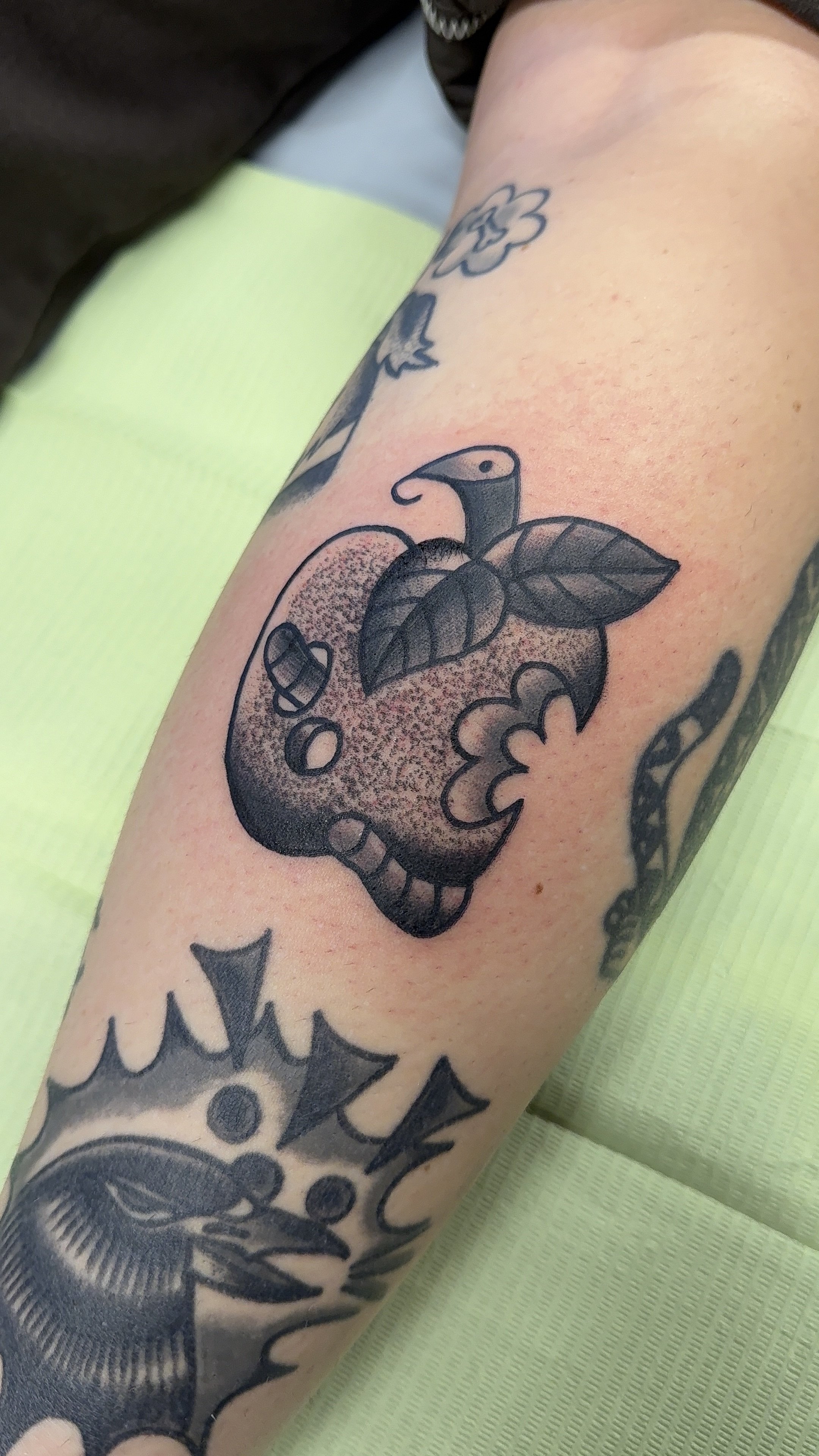 Tattoo of a worm filler tattoo drawn to fit the open space.